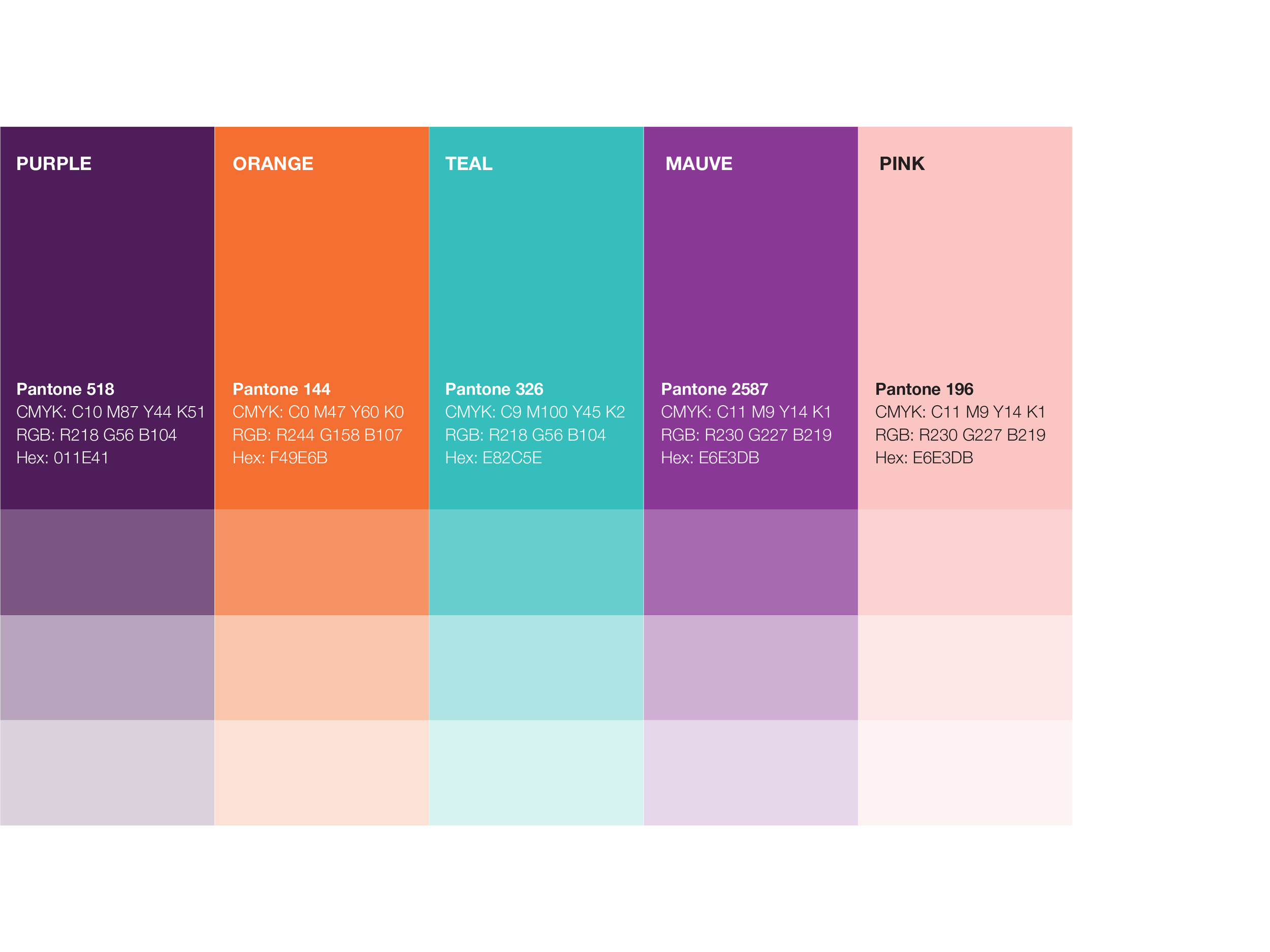 The colour palette remained rooted in the brand’s history, with deep purple retained as the primary colour. The supporting palette was inspired by the original brand and carefully updated and refined to feel more contemporary.