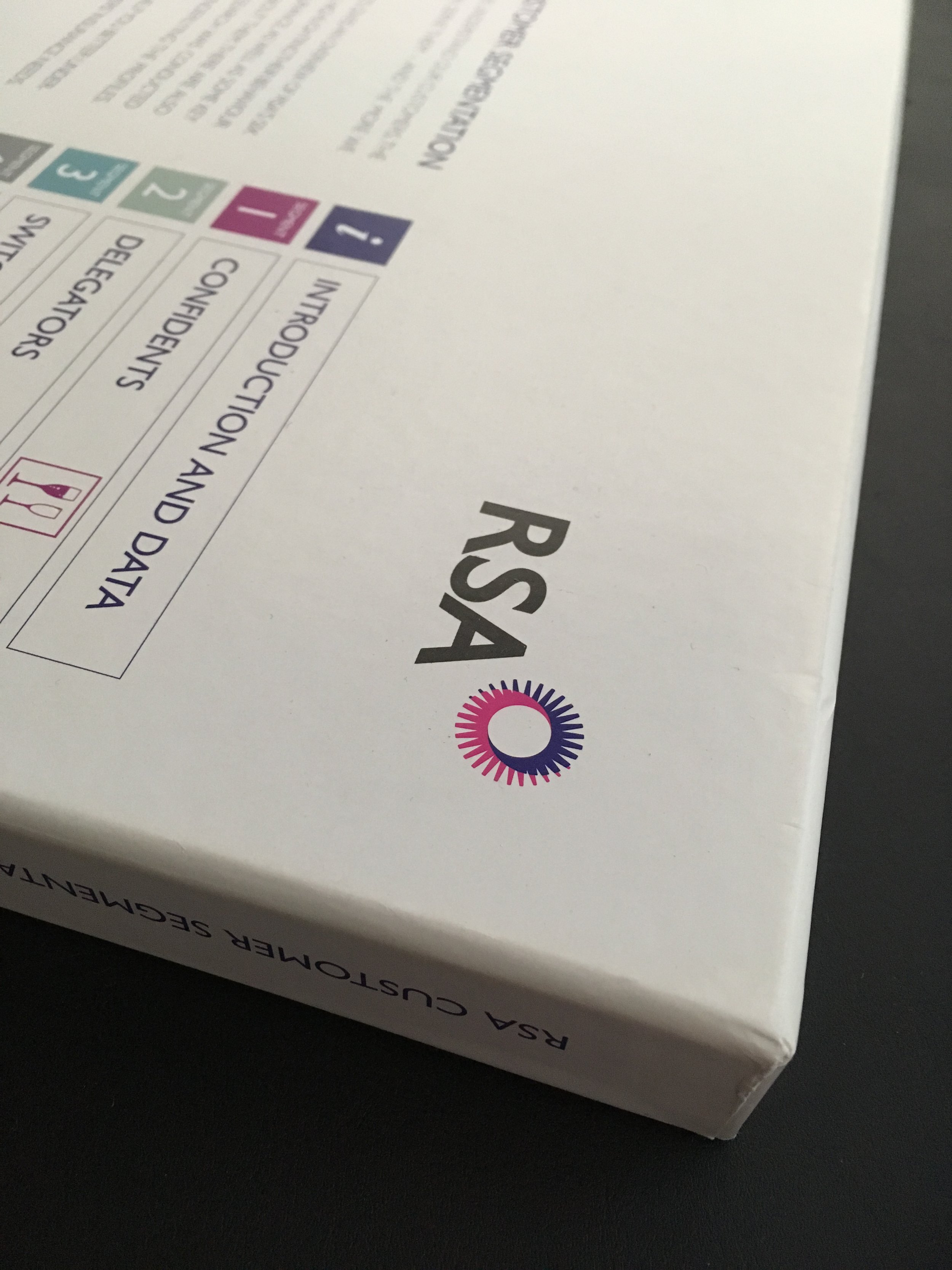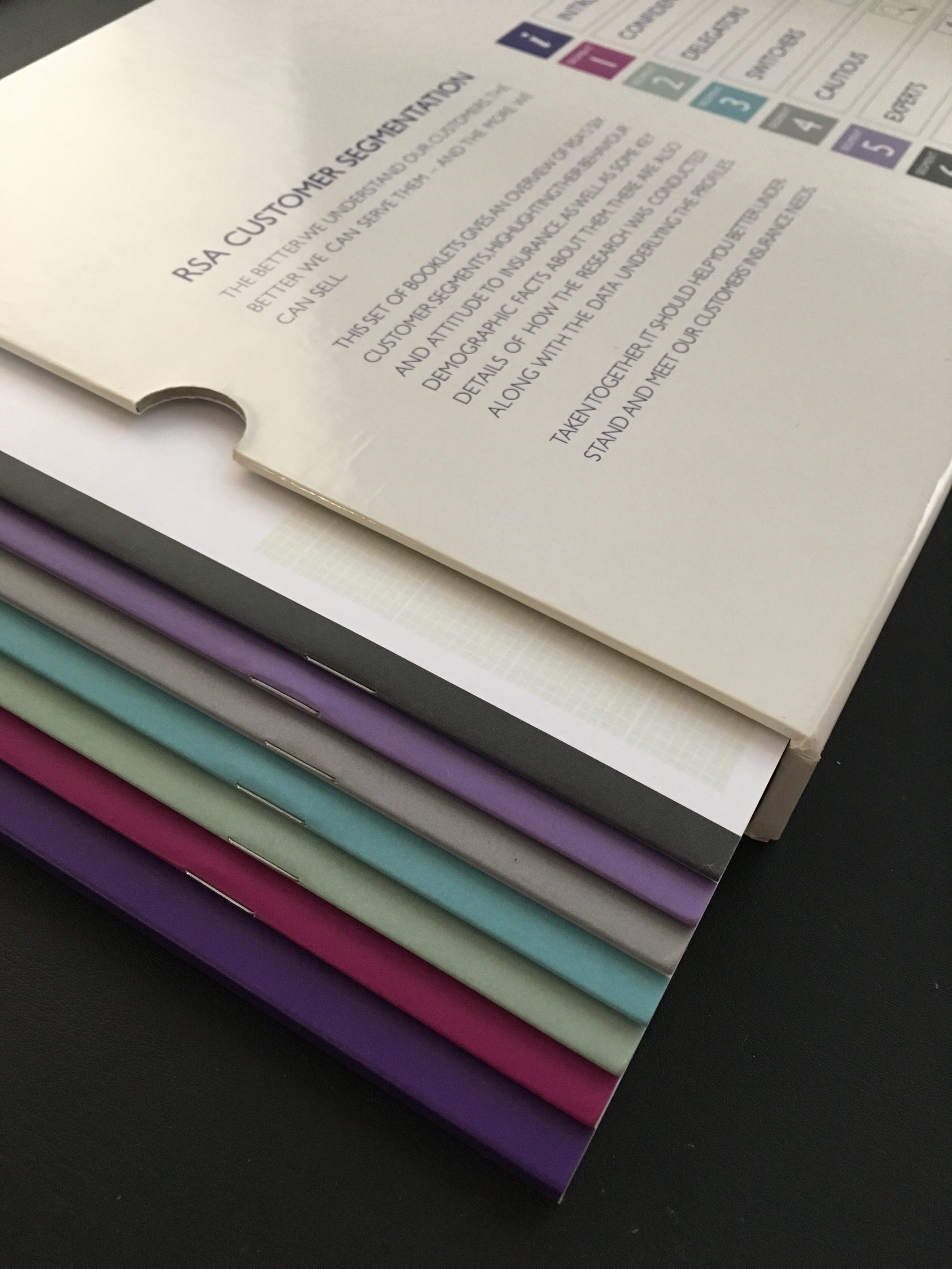 I designed individual covers for each segment, assigning a distinctive icon and a unique colour drawn from RSA’s existing corporate palette. This system created clear visual differentiation while remaining consistent with the corporate colour palette.