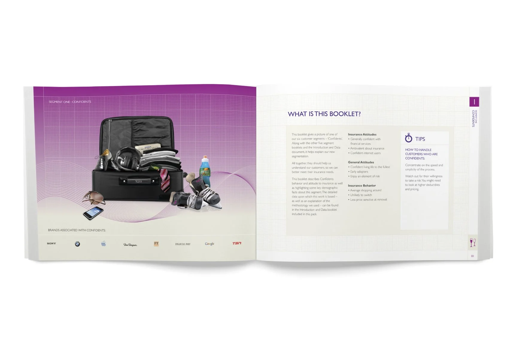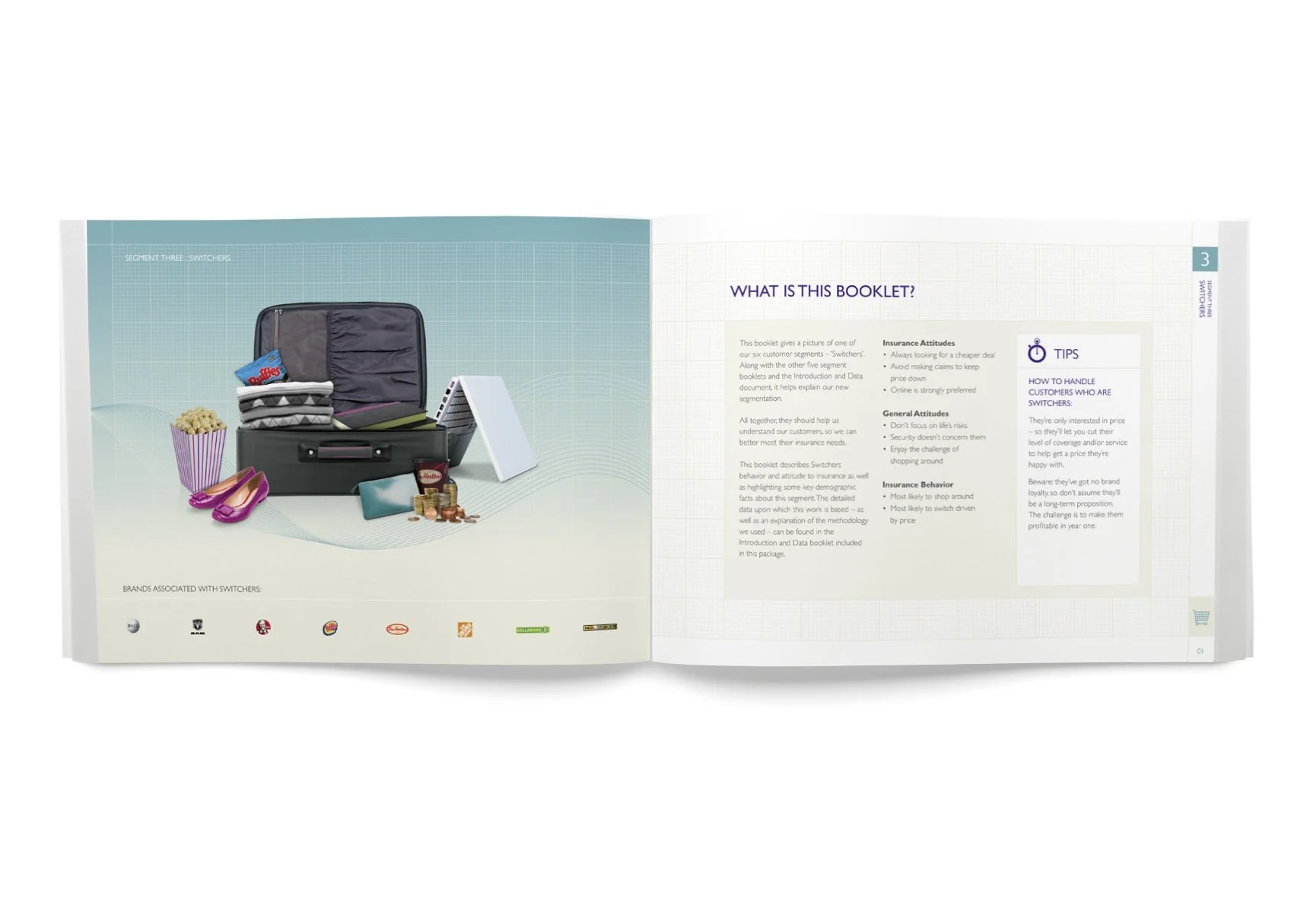 To summarise each segment, I used the visual metaphor of a suitcase to help insurance sales teams quickly understand their target audience and identify the products most relevant to their needs.