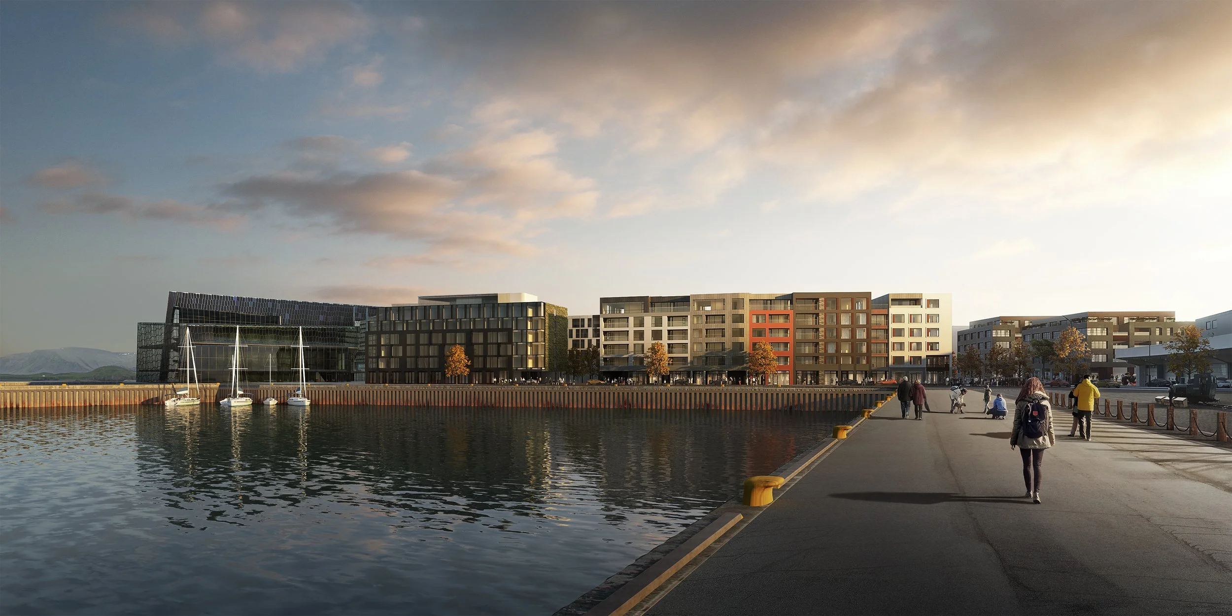 Austurhöfn is a luxury mixed-use development on Reykjavík’s historic harbour, combining high-end residential apartments with retail space in a contemporary waterfront setting. Located beside the Harpa Concert Hall, it plays a key role in the harbour district’s revitalisation and the city’s downtown expansion.
