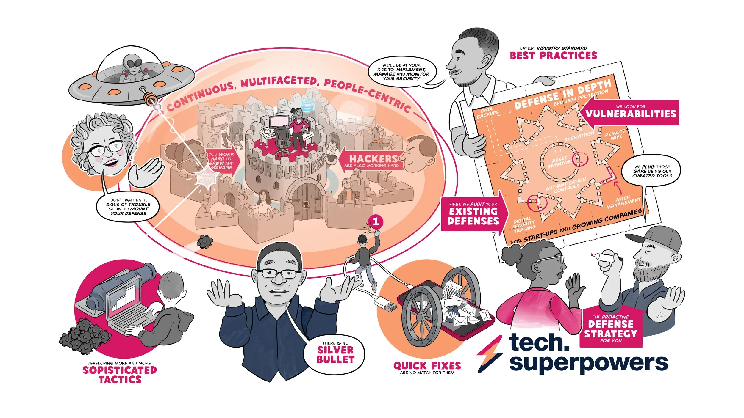 To simplify complex messaging, I led the team in developing whiteboard animations that used hand-drawn visuals and audio narration to clearly demonstrate how lapses in IT and cybersecurity can impact fast-growing startups.