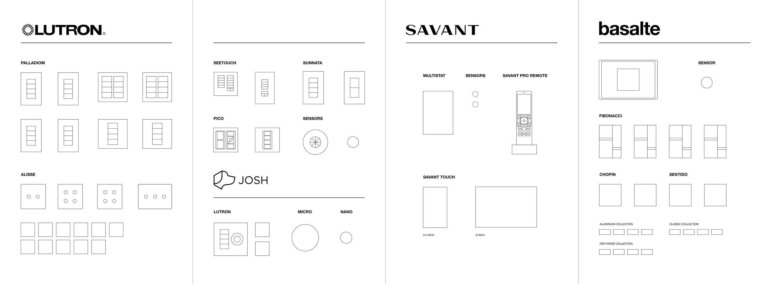 I designed the keypad wall as a focal point of the showroom, creating an interactive installation that allows visitors to explore the full range of keypads and handheld devices while experiencing the high-end custom finishes available.