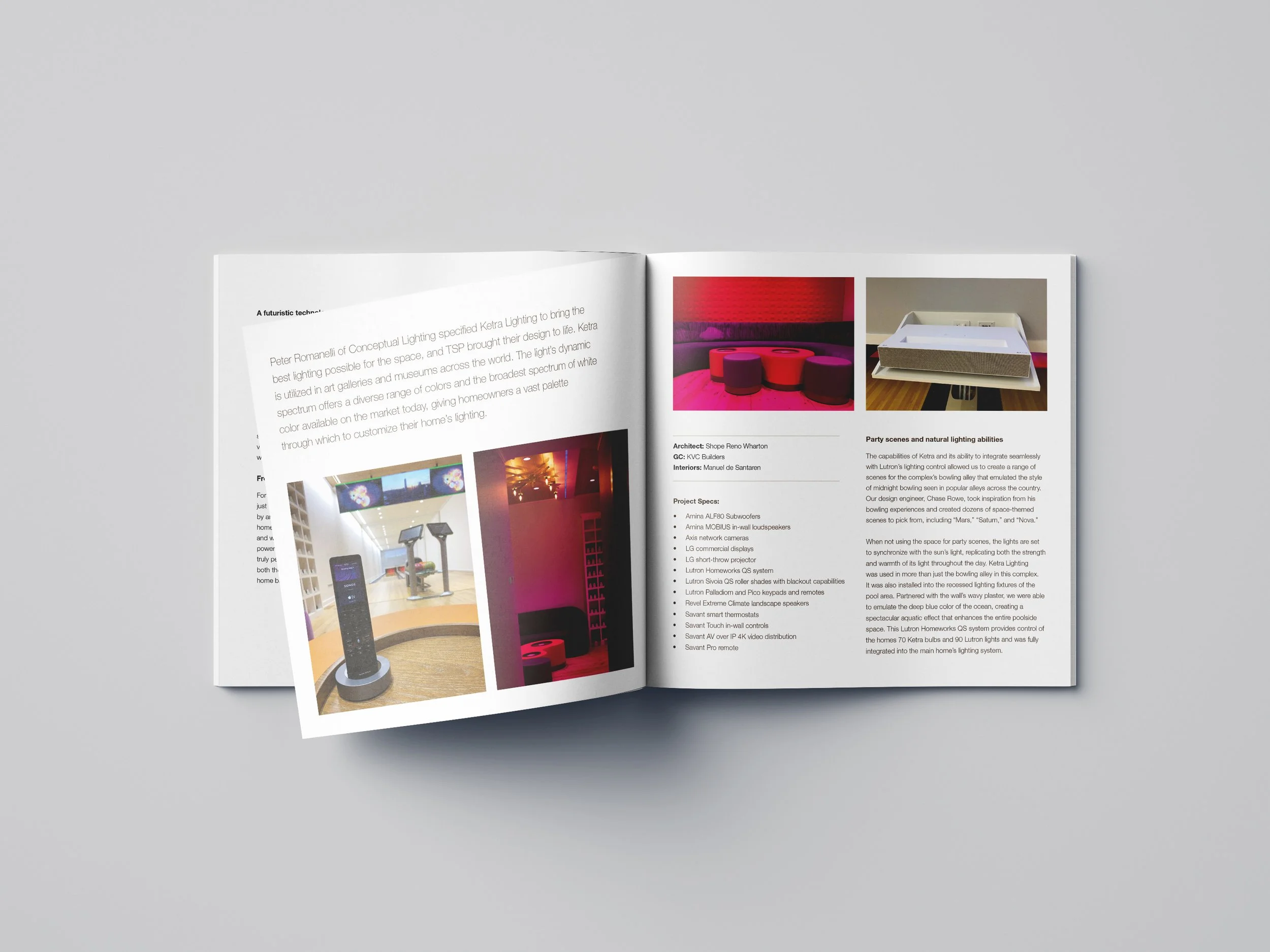 Anytime a new ‘star’ project was finished, I would commission professional photography and create a case study brochure. This allowed us the flexibility to customise a pack to send out, depending on the scope of the project we were bidding on. As technology quickly ages out, we could retire one project without reprinting one large brochure.